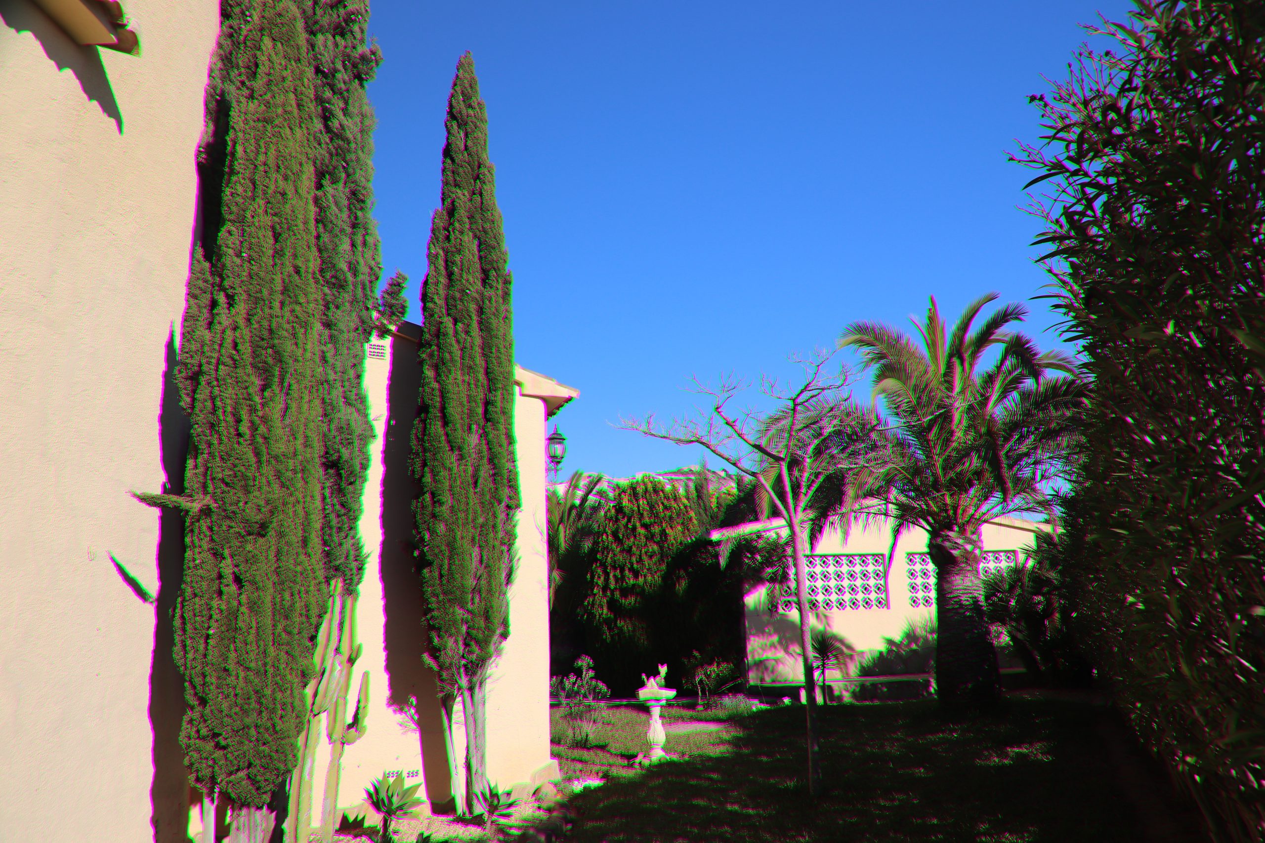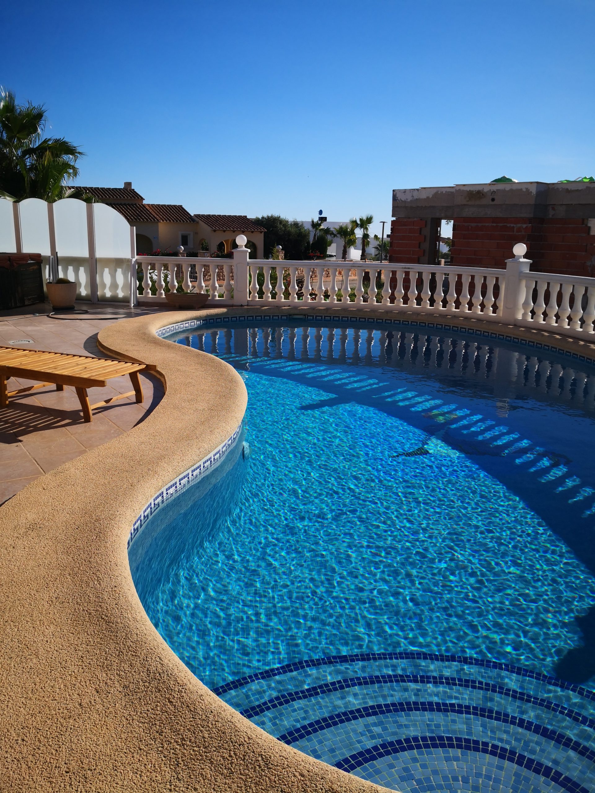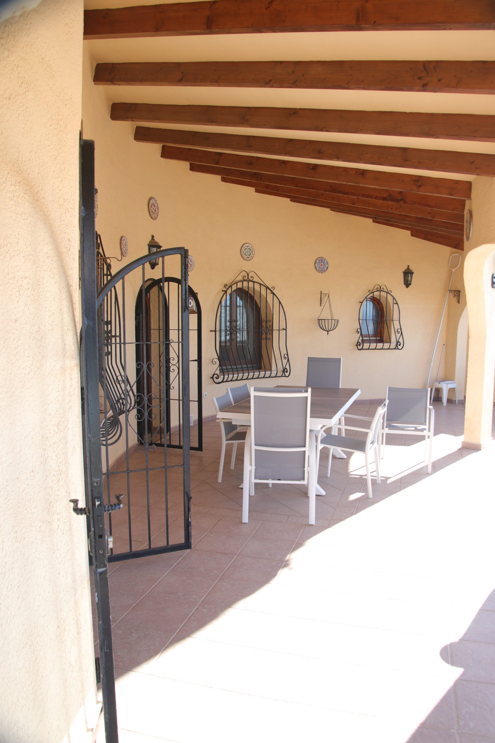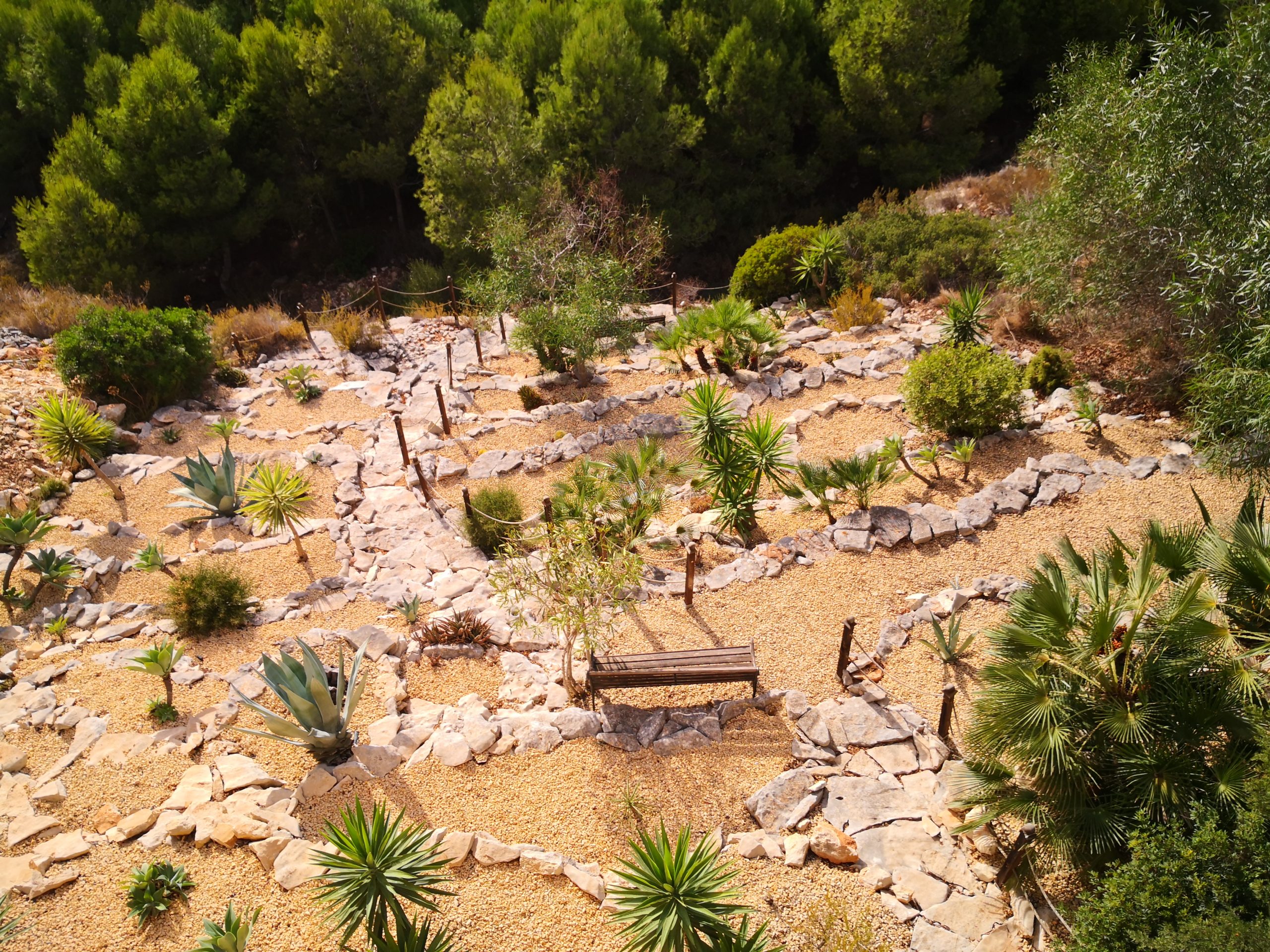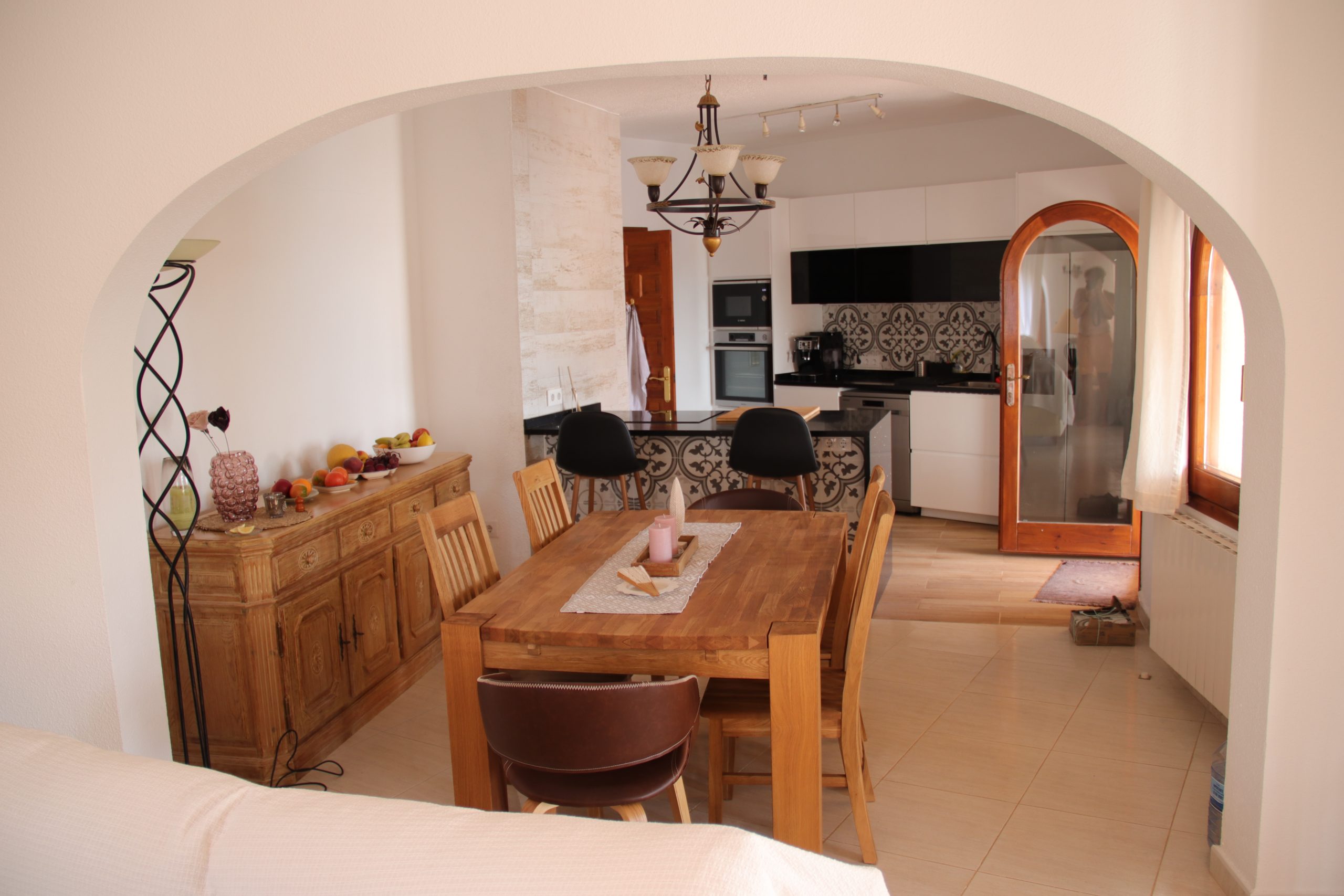 Das Haus hat ca. 180 m² Fläche auf einer Ebene, mit Pool und liegt auf einem etwa 1.000 m² großen Grundstückstück in idyllischer Lage auf einem Felsen mit Blick auf ein Naturschutzgebiet und an der Küste entlang gen Süden auf den Penon de Ifach, den berühmten ins Meer ragenden Felsen von Calpe. Durch seine Südausrichtung hat es ganztägig Sonne und bietet gleichzeitig ausreichend Schatten unter den Bäumen des mediterranen Gartens oder der überdachten Veranda.